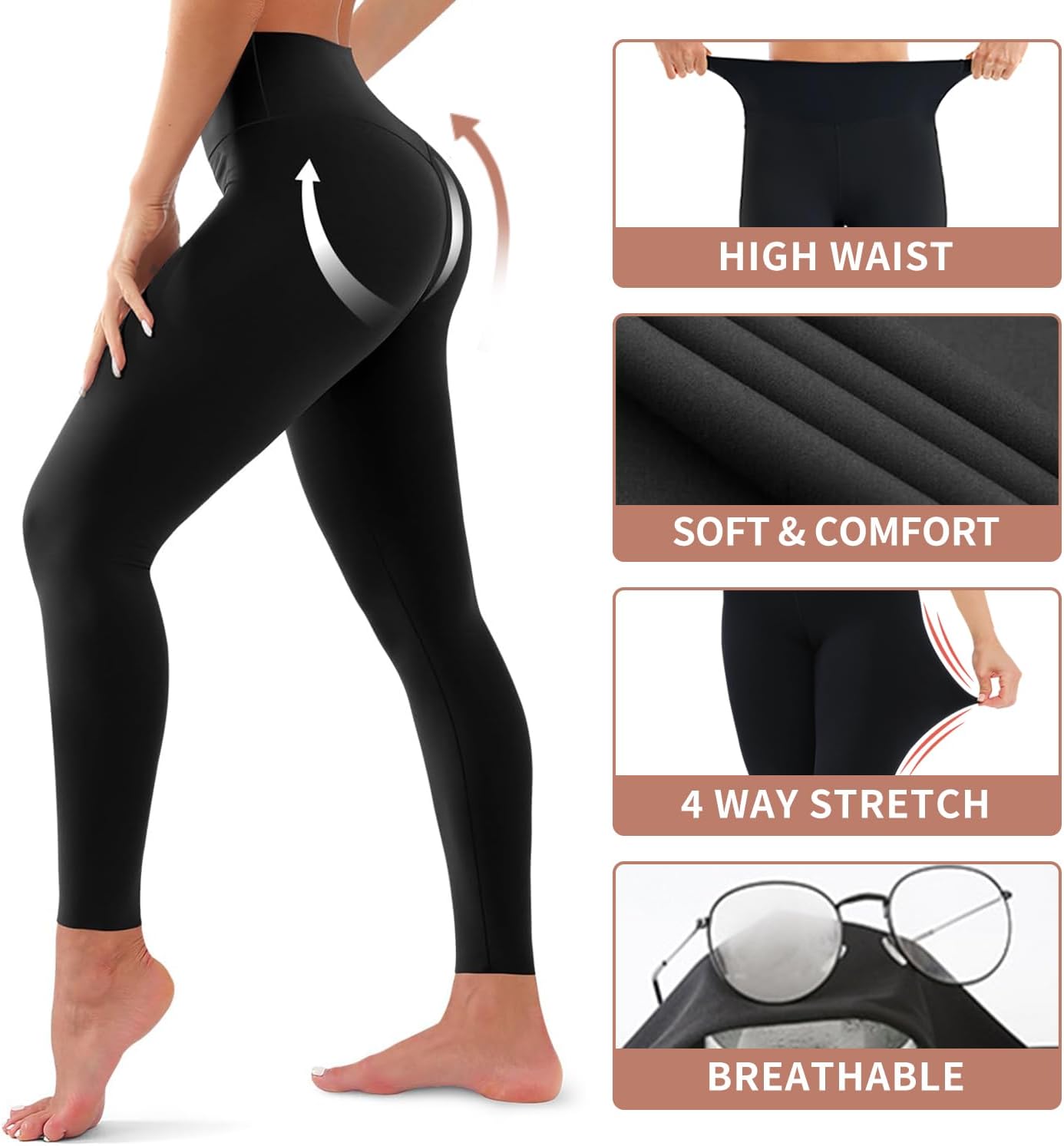 Don’t sacrifice style for comfort – our leggings offer both! Choose from a variety of colors in this 4 Pack set to mix and match with your favorite tops. Upgrade your activewear collection with our Butt Lift High Waisted Tummy Control Leggings today!